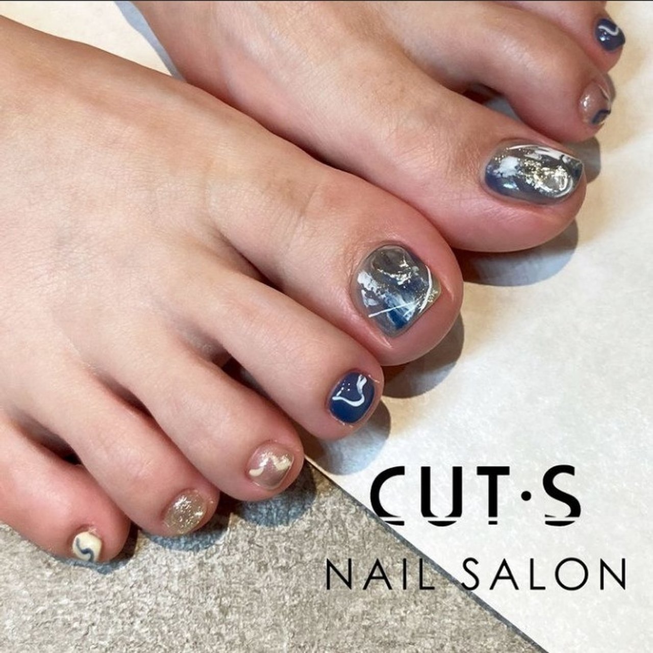 冬 フット ブルー ジェルネイル お客様 Cut S Nail Salonのネイルデザイン No ネイルブック